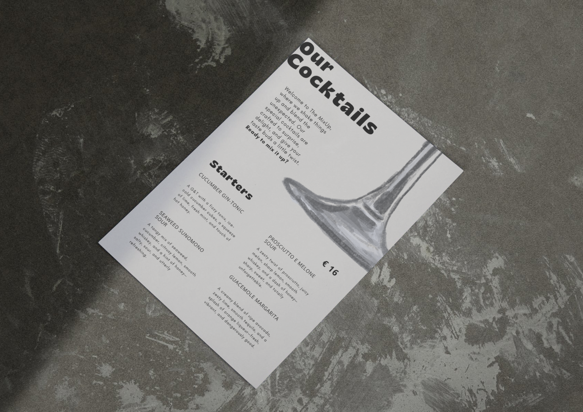 Voor The MixUp cocktailbar ontwikkelde ik een uniek horecaconcept en ontwierp ik zowel het logo als de menukaart.