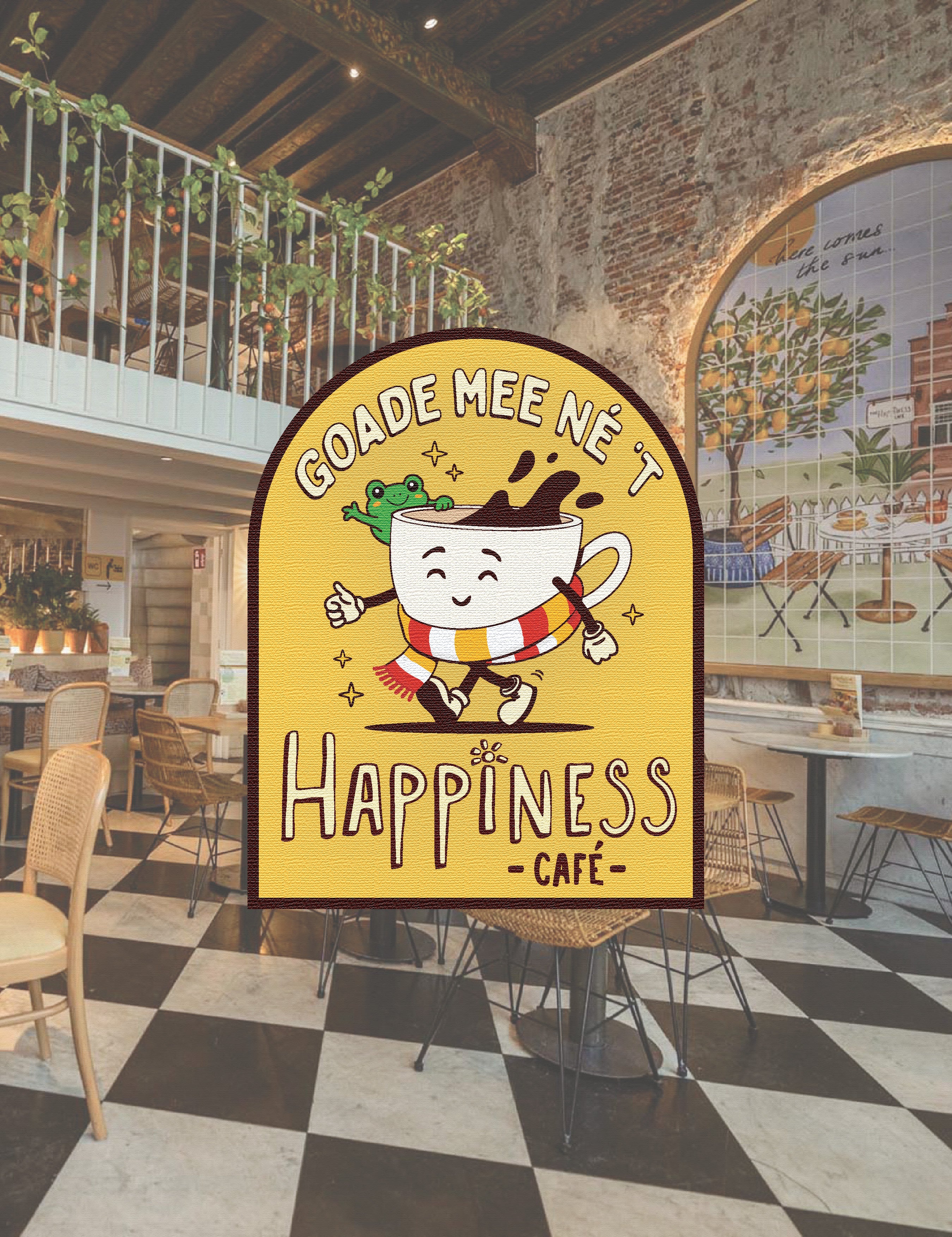 Voor The Happiness Café in Den Bosch heb ik dit embleem ontworpen, passend bij hun kleurrijke branding en positieve energie.