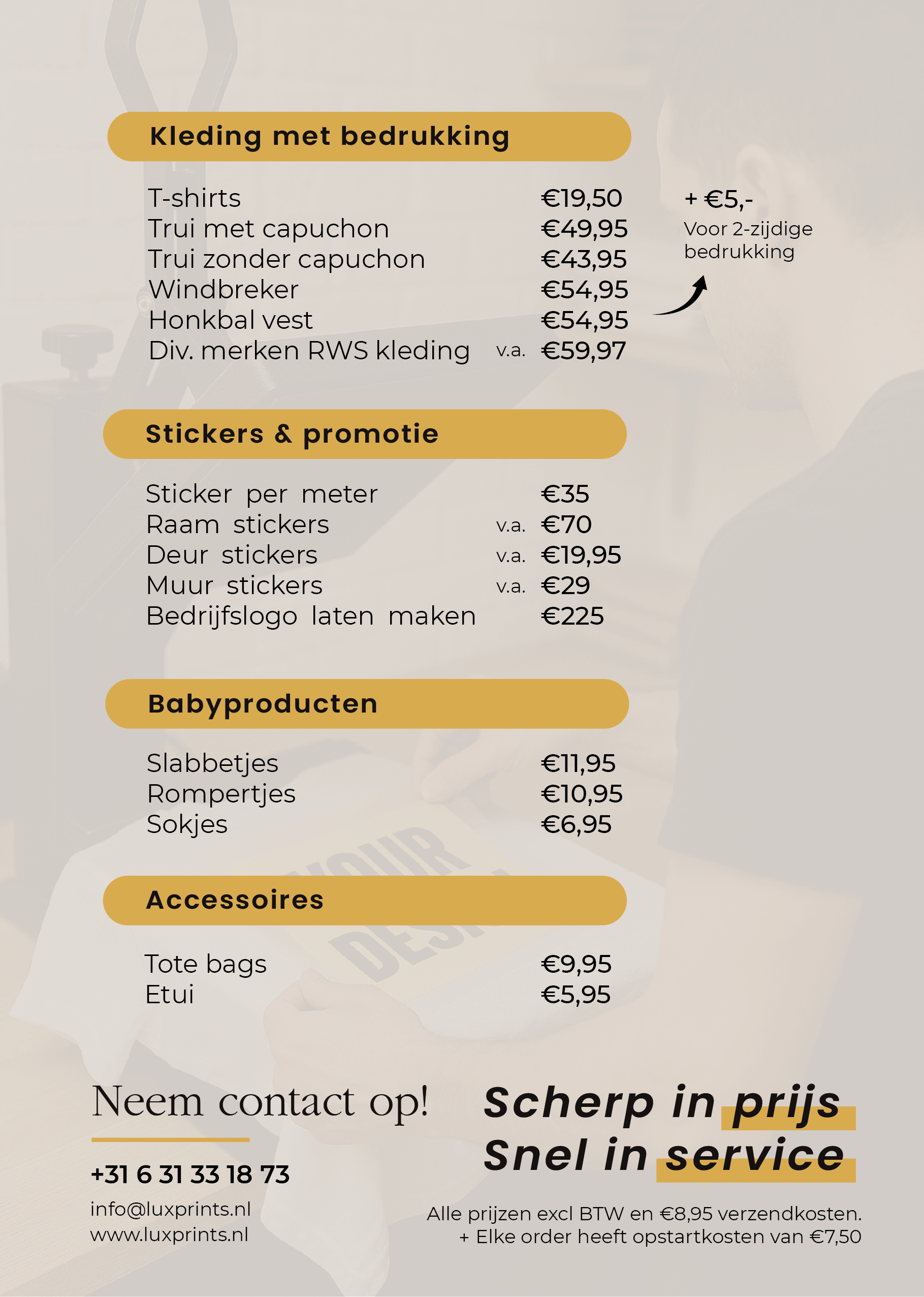 Voor Lux Prints ontwierp ik deze flyer met prijzenlijst.